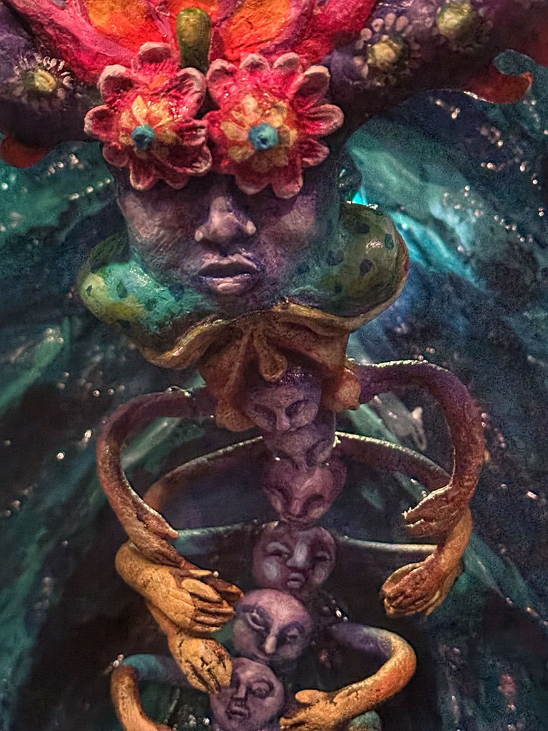 I was especially moved by her art featuring beetle & ant medicine, her “Tears of the Sun” imagery, and the spiral-and-spine motifs that reveal layered stories of life’s evolution. Moving through her exhibit inspired me at a such deep level, calling me deeper into ancient patterns of evolution & emergence. This exhibit awakened & inspired me immensely.